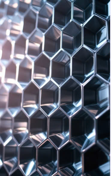 Nhôm được cắt, dập thành hình lục giác. Các tấm được xếp chồng và dán kết tạo lõi tổ ong.
